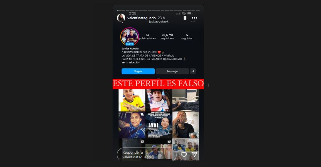 “La familia de Javier Acosta no está buscado plata ni ayuda por ningún lado. El único medio para la educación de Valentina es un link de la ‘vaki’ que creamos para ella (...) Hay miles de páginas y personas estafando a todo el mundo diciendo que son su familia”, aclaró Taguado.