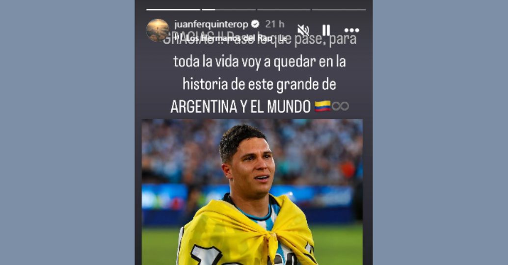 Ahora, este viernes, Juanfer publicó una historia en su cuenta de Instagram que generó especulaciones y algunos interpretan como una posible despedida de Racing.