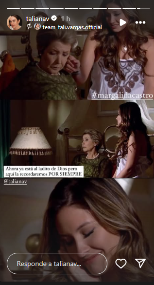 En una de sus histoiras de Instagram, Taliana publicó algunas fotografías de cuando estaba haciendo la serie junto a Margalida y escribió: "ahora ya está al ladito de Dios, pero acá la recordaremos por siempre".