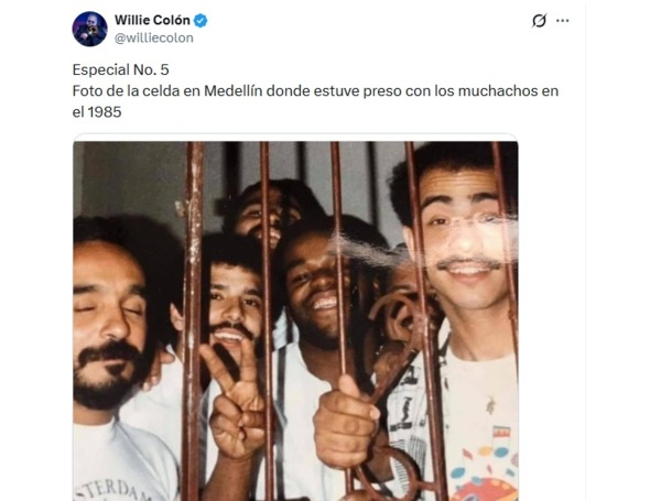 La decisión desató la furia del público que esperó horas, generando disturbios con riñas, destrozos y caos en el coliseo. La policía intervino y detuvo a Colón y sus 13 músicos por cargos de incumplimiento de contrato y estafa, confinándolos 48 horas en una celda de la estación del barrio Belén. En 2021, el salsero compartió en X la foto de ese momento tras las rejas, con la leyenda: “Foto de la celda en Medellín donde estuve preso con los muchachos en 1985”.