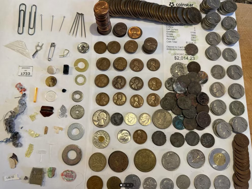Finalmente, el hombre reveló que "La moneda más antigua es un centavo de trigo de 1928, la más nueva es una moneda de diez centavos de 2023, así que casi 100 años de monedas. También encontramos 77 centavos de trigo de 1928-1958, y sigue una moneda de veinticinco centavos de plata de 1951, dos monedas de diez centavos de plata de 1963 y 1964. Había, incluso, una moneda de diez centavos de mercurio del año 1942, y por supuesto, monedas ya de un dólar, también de plata y oro."